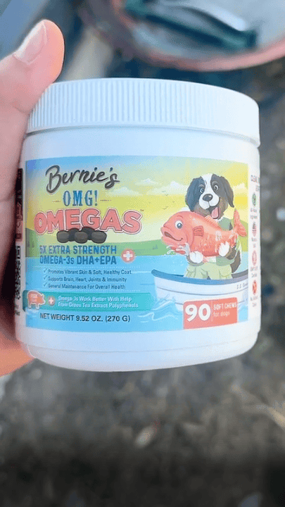 Bernie's OMG! Omegas are formulated for dogs of all ages. DHA supports cognitive development in puppies and younger dogs. EPA is a powerful antioxidant and anti-inflammatory that benefits adult and senior dogs by supporting joint health, cardiovascular function, healthy coat maintenance, and cognitive function.