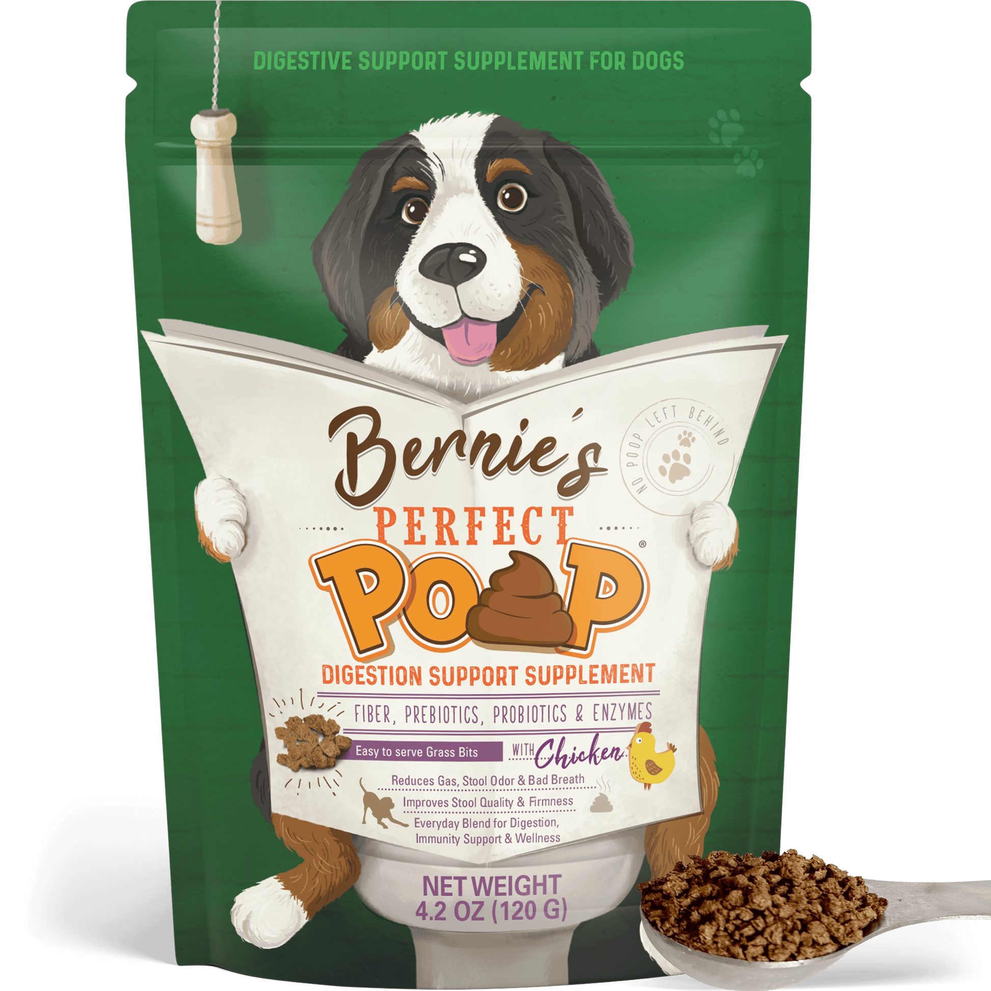Started using Bernie’s Perfect Poop several years ago when trying to find relief for my rescue dog with diarrhea possibly caused by Giardia she got in Mexico. With two weeks, no more diarrhea. Been using it religiously since!
